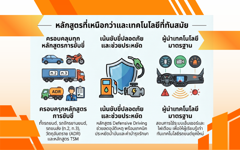 3. หลักสูตรที่ครอบคลุมและทันสมัย (Not Just Driving, But Safe Driving)