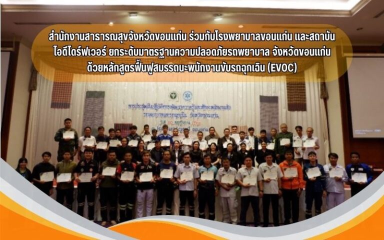 สำนักงานสาธารณสุขจังหวัดขอนแก่น ร่วมกับโรงพยาบาลขอนแก่น และสถาบันไอดีไดร์ฟเวอร์ ยกระดับมาตรฐานความปลอดภัยรถพยาบาล จังหวัดขอนแก่น ด้วยหลักสูตรฟื้นฟูสมรรถนะพนักงานขับรถฉุกเฉิน (EVOC)